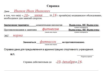 Справка в спортзал образец заполнения:![]() |